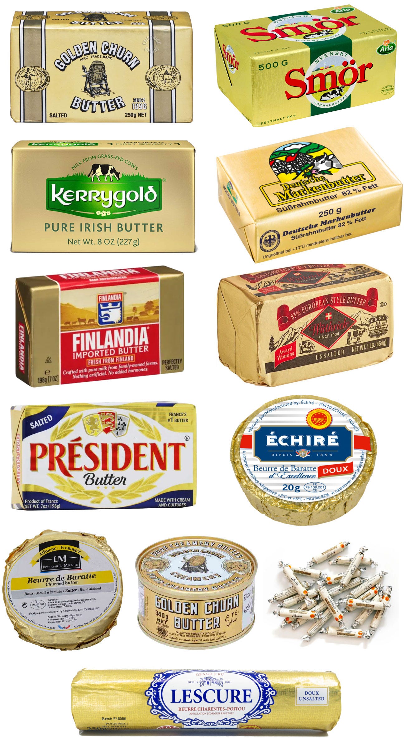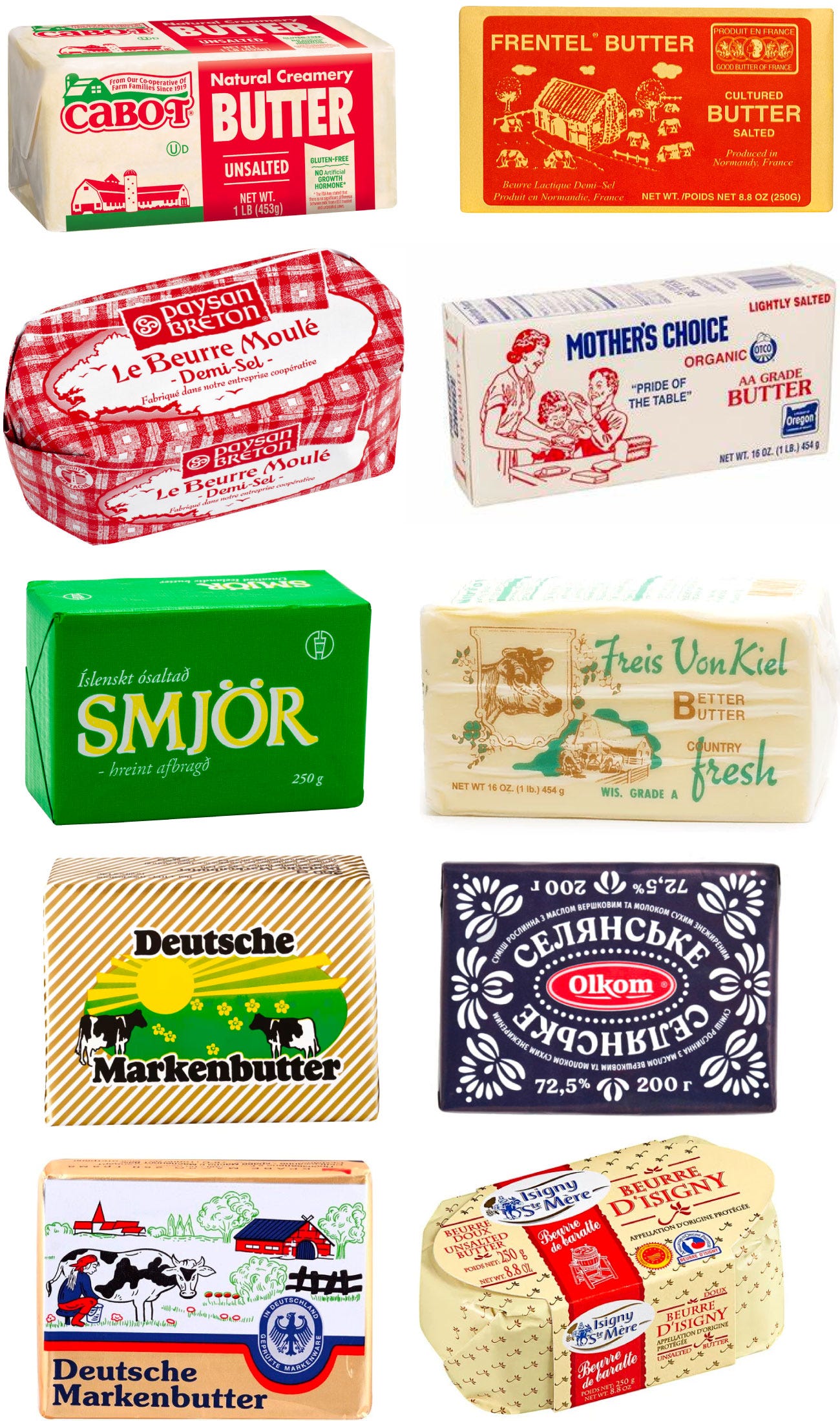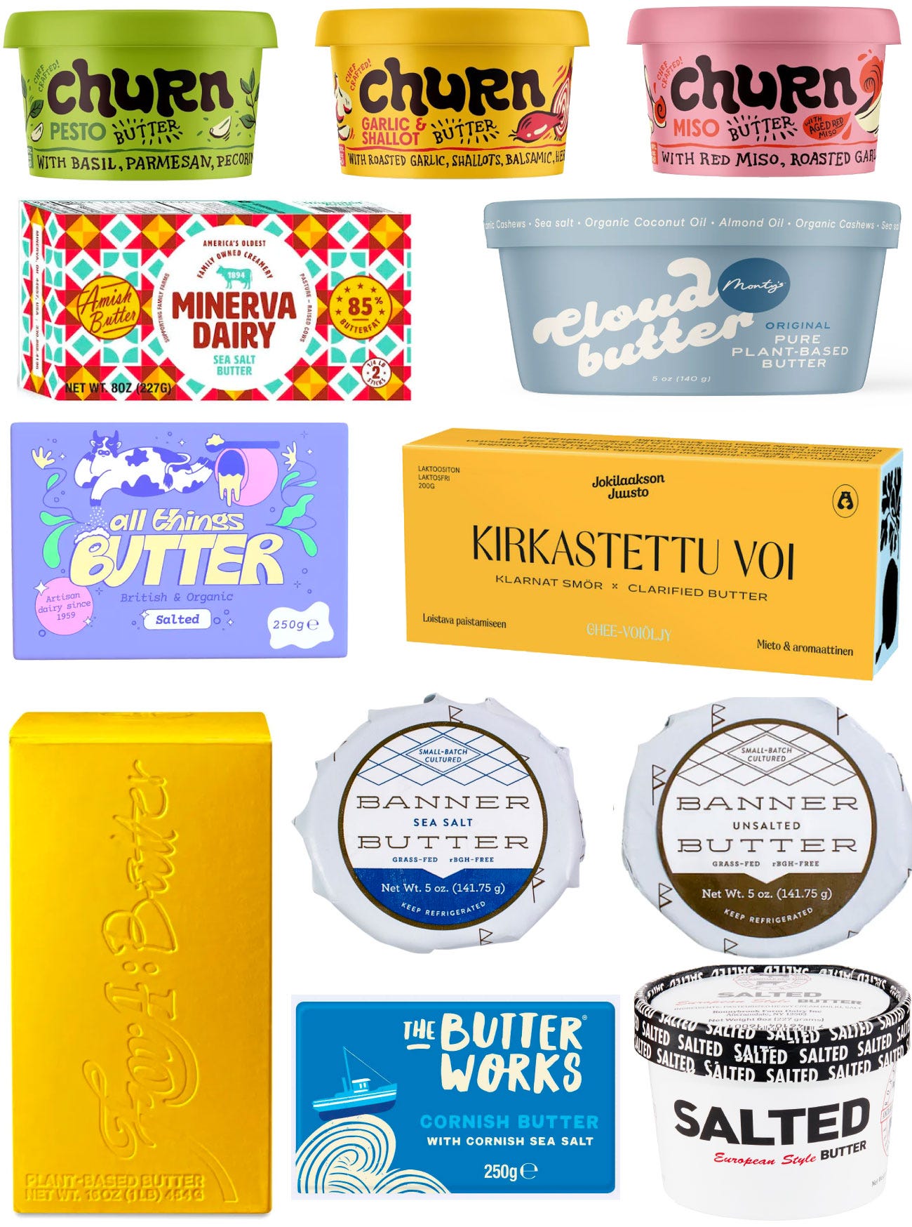 I’ve never been loyal to butter brands. I don’t buy it based on packaging, I don’t even spring for grass-fed or whatever is “best” when I do. It usually comes down to what is cheapest, or whatever brand is top of mind because of a baking video I recently watched on YouTube. Going into this newsletter I thought there was going to be more room for improvement as far as packaging design goes, but what I stumbled upon below is quite inspiring (due in large part to European brands). Most of what you’ll see is butter from animals, but I sprinkled a few plant-based butters in there because I couldn’t resist.