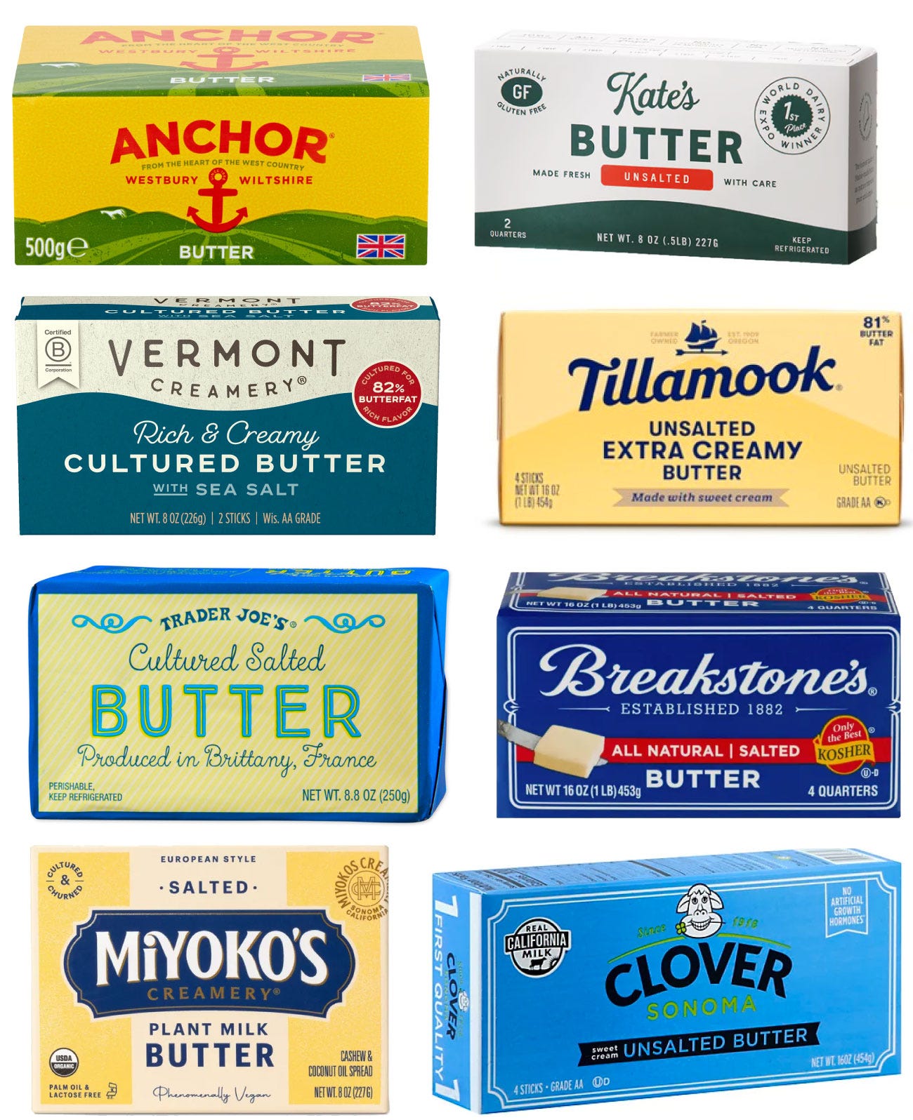 Read: a little bland. I swear all of these brands have blanded their packaging since I last bought or saw them: Kate’s Butter, Anchor, Vermont Creamery, Tillamook, and Clover. Maybe I’m a jaded designer but I’m tired of everything getting flatter and cleaner.